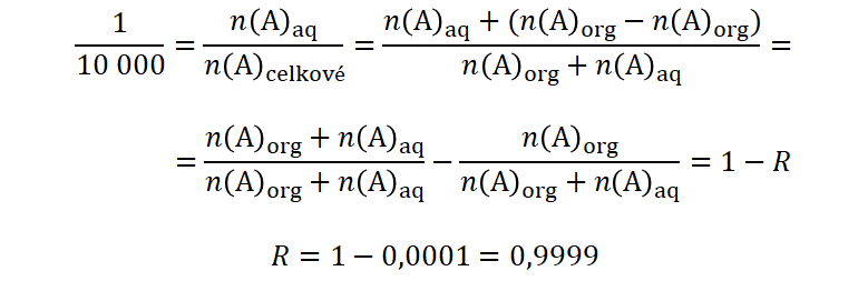 je evidentní, že výtěžek po 1 kroku extrakce je menší než 0,9999 a nesplňuje zadanou podmínku