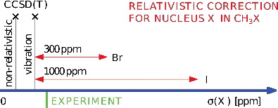Ab initio NMR parameters of BrCH3 and ICH3 with relativistic and vibrational corrections.